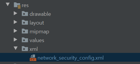 2) res 폴더 아래에 다음과 같이 xml을 리소스 폴더를 만들고 network_security_config.xml 추가